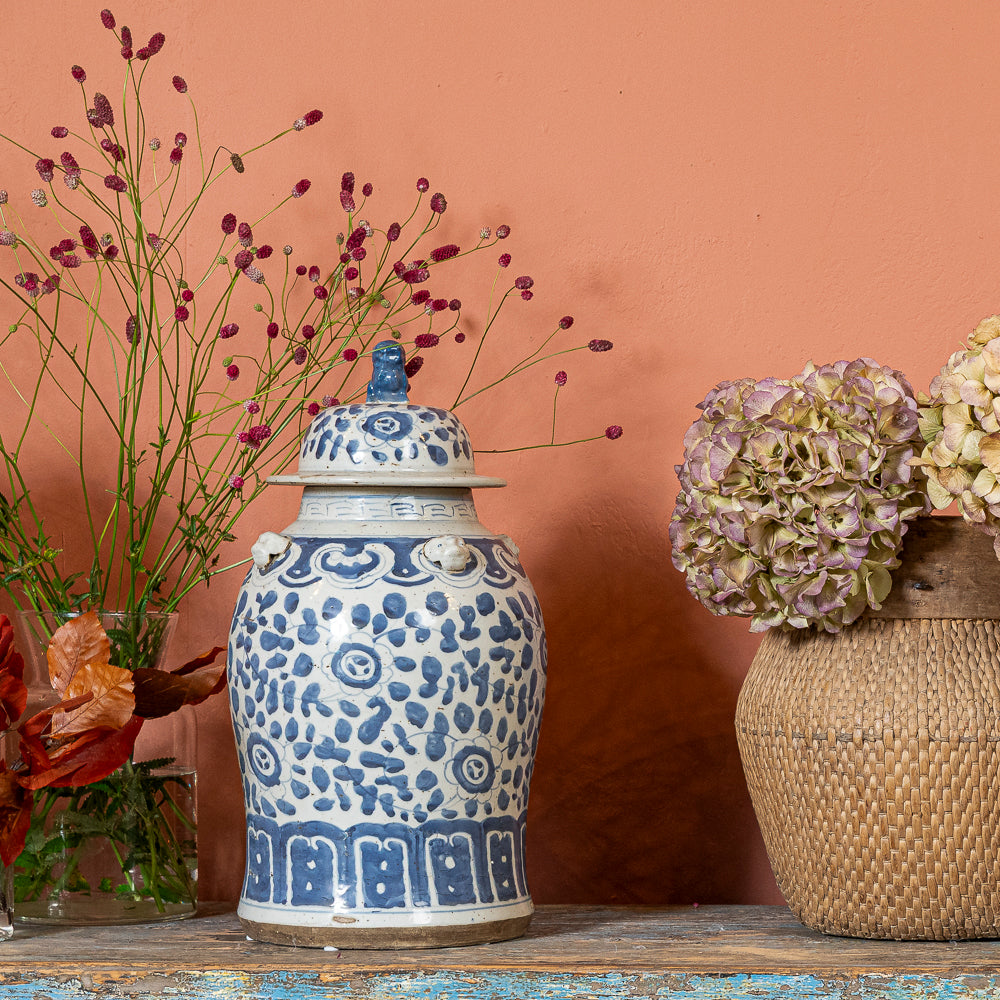 This jar is part of our exclusive ceramic collection from Jingdezhen. Each piece is handmade and hand-painted using traditional techniques. The aim is to create an aged, authentic look that feels like a true antique. These ceramics are not clean or factory-perfect. Instead, they show subtle imperfections, marks, and variations. These are all part of the charm. The process is skilled and deliberate. Dirt marks and uneven finishes may be visible. This is exactly what gives each jar its unique character. These are not mass-produced pieces, they are made to look old, and that’s what makes them special.