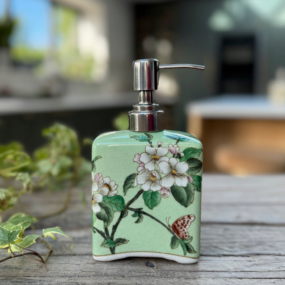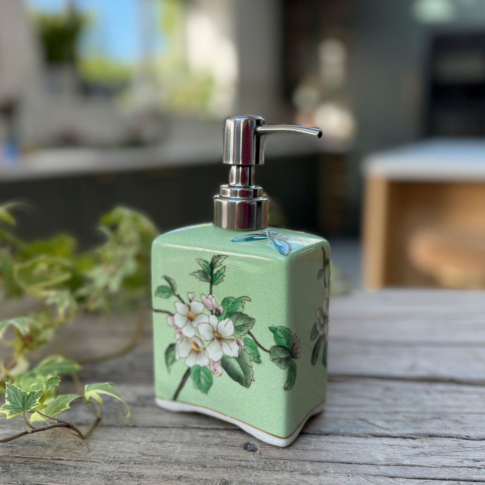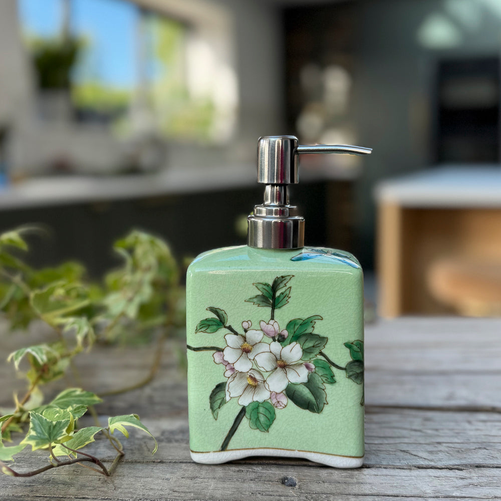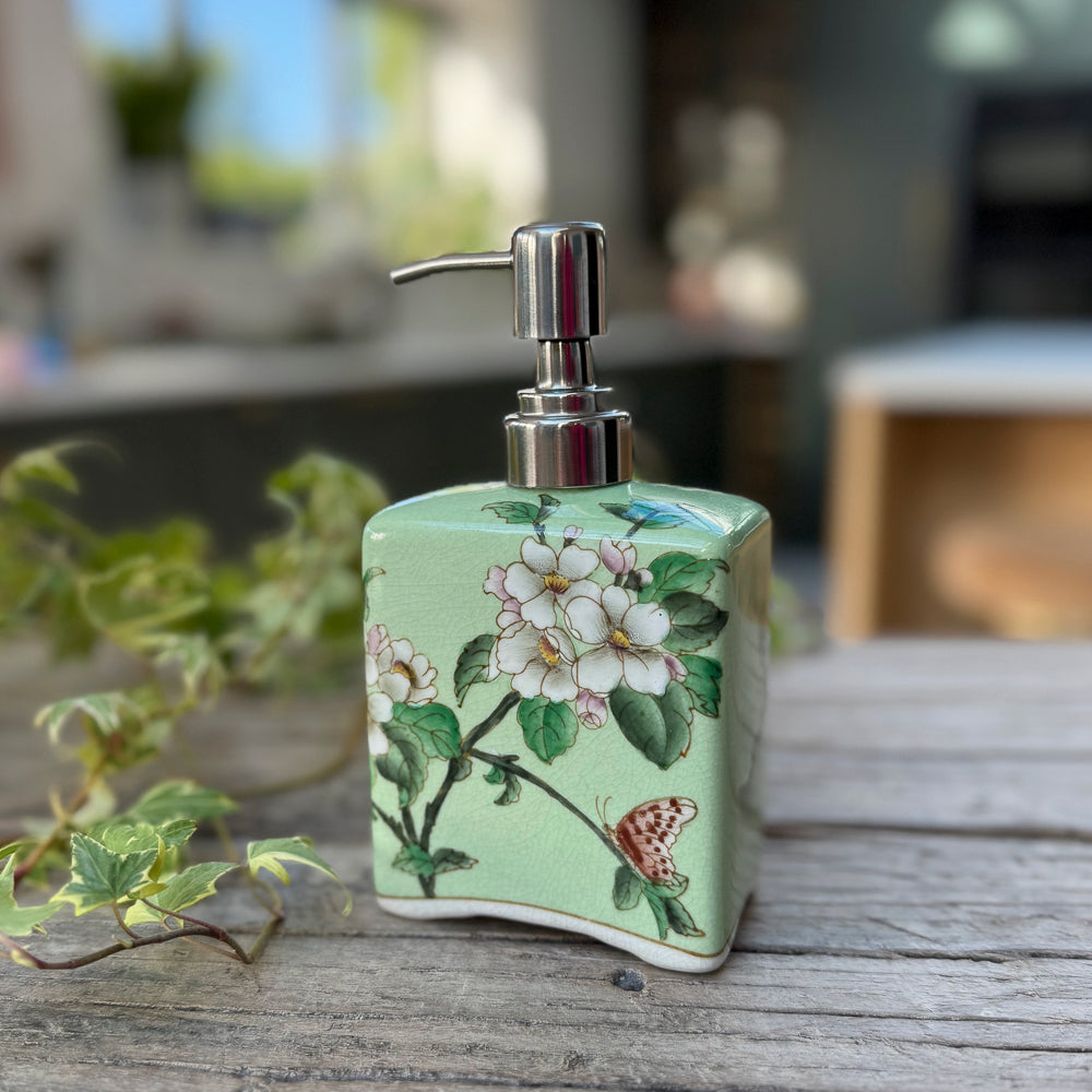 This adorable ceramic soap dispenser will add a touch of charming Eastern flair to your bathroom or kitchen. The beautiful hand-painted flowers are sure to brighten up any space, and the high-quality porcelain ensures that this piece will last for years to come.