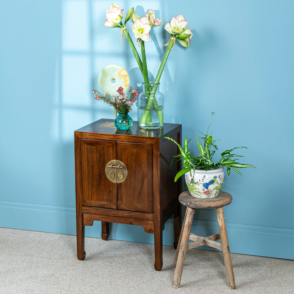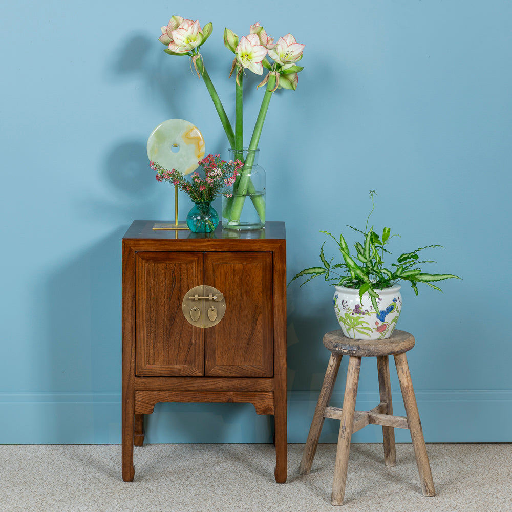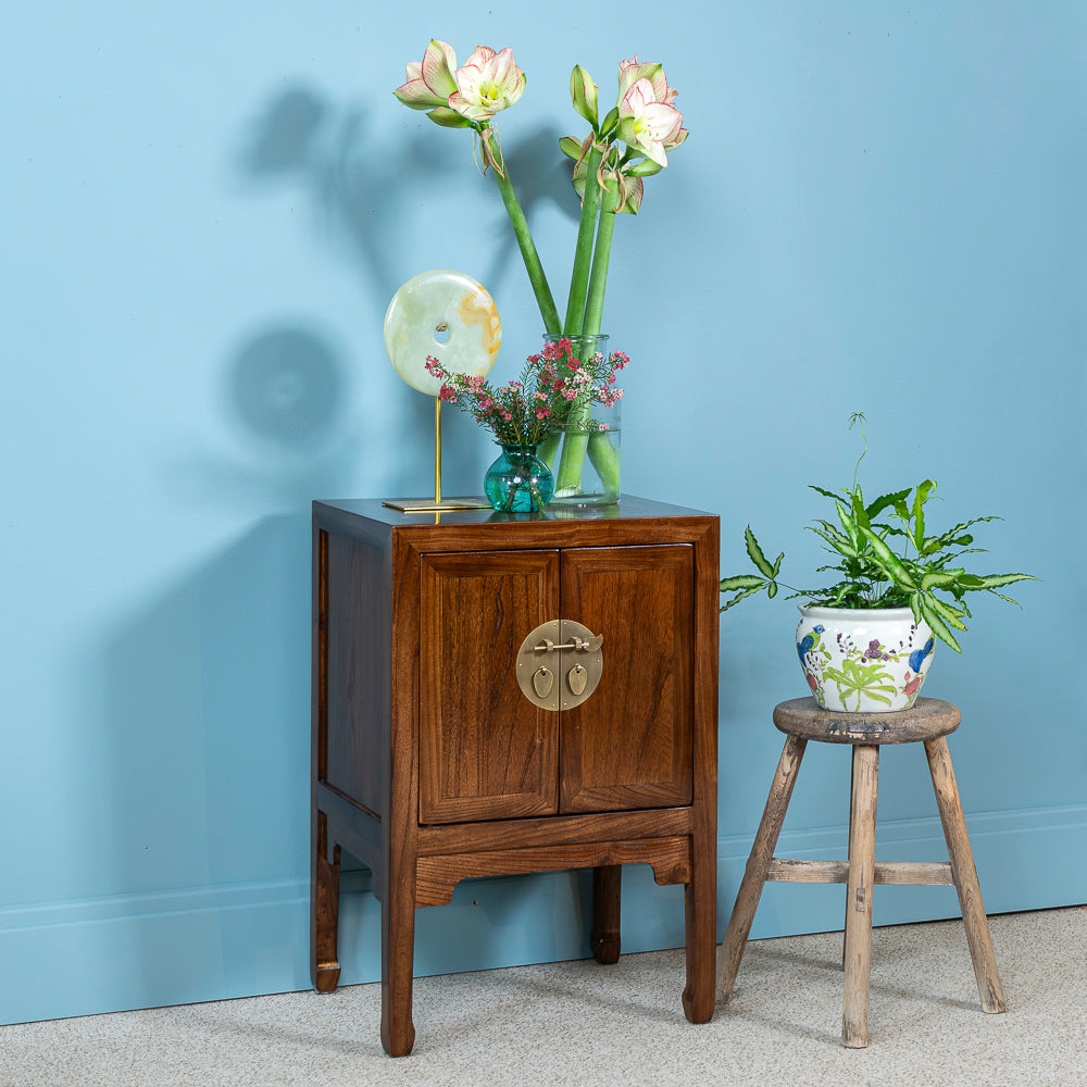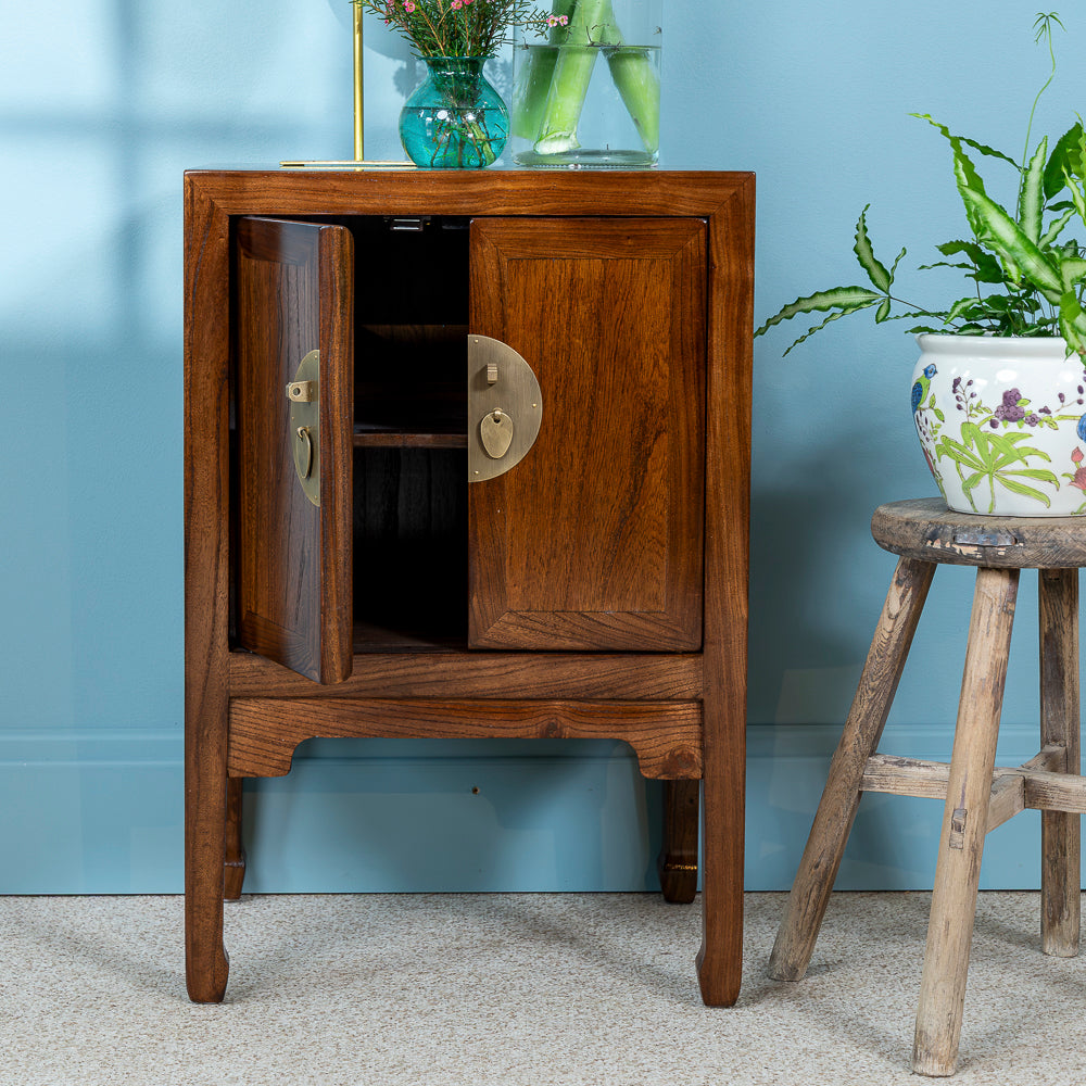 The KWAN Brown Lacquer Cabinet captures the natural beauty of elm wood through its warm, mid-brown lacquer finish that highlights the grain rather than concealing it. Handcrafted by skilled artisans, this elegant oriental cabinet is perfect as a bedside table or side cabinet, bringing both functionality and refined character to any room. The lacquer is carefully applied to enhance the wood’s natural depth and tone, resulting in a smooth, lustrous surface that feels timeless and sophisticated.