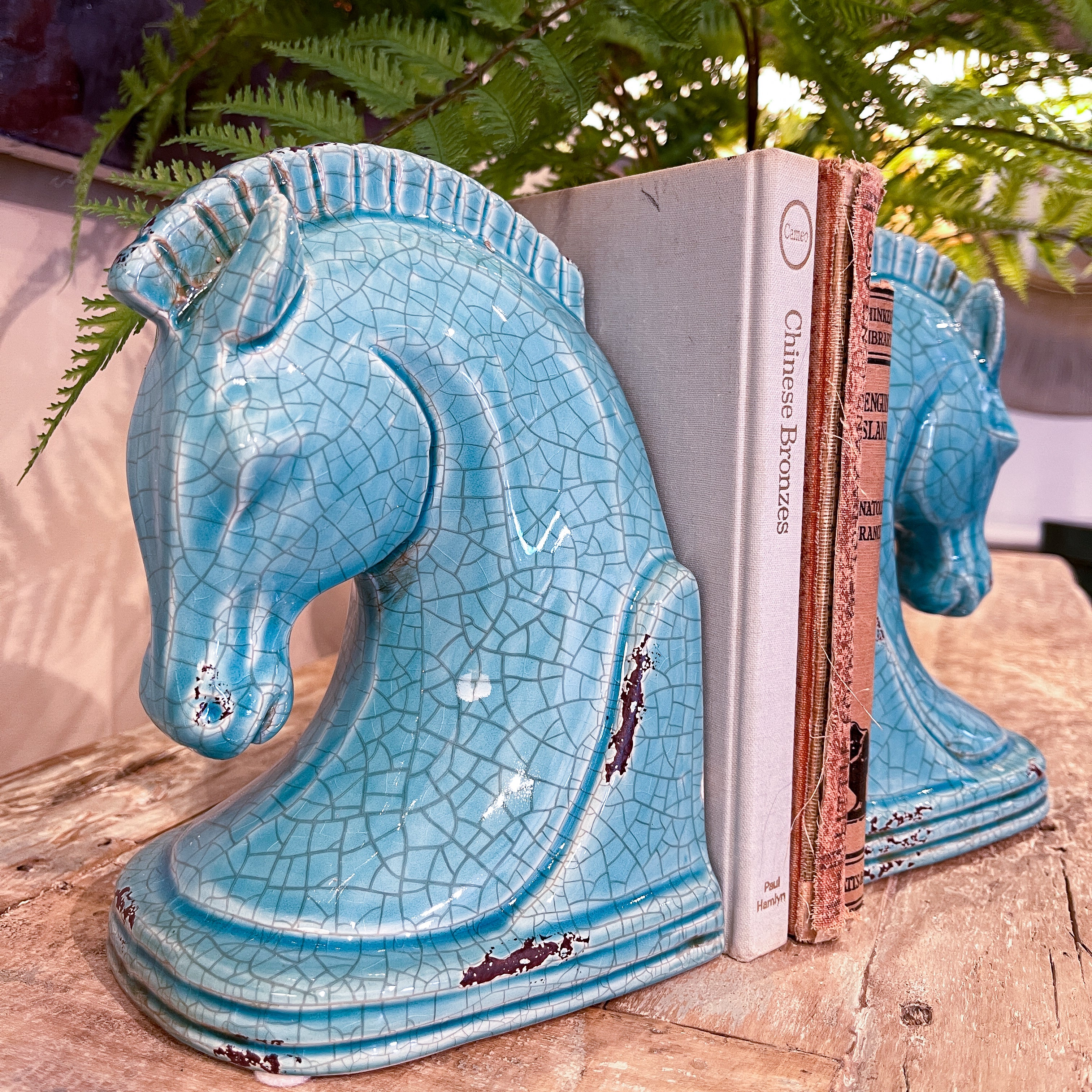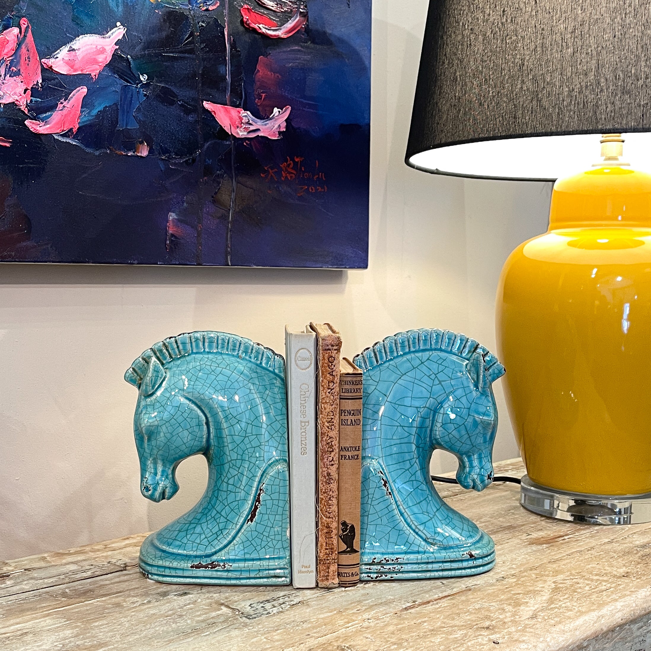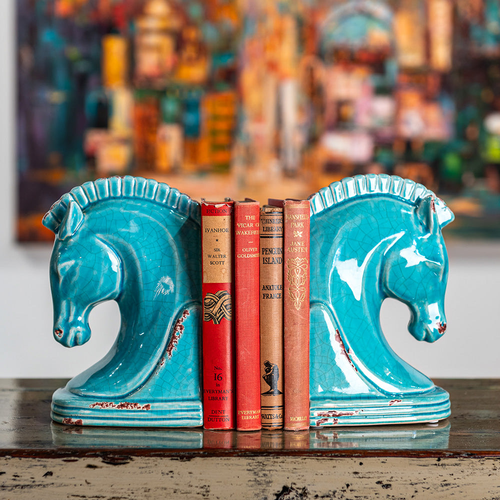 Show off your equestrian passion, or add a dash of colour to your home with this elegant pair of horse head bookends. Made of ceramic and finished with a crackle finish, this beautiful piece is perfect for holding your books in place whether in a study or living room or even as an entrance or hallway feature.