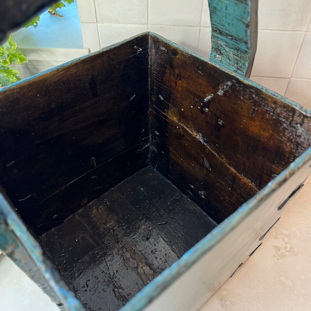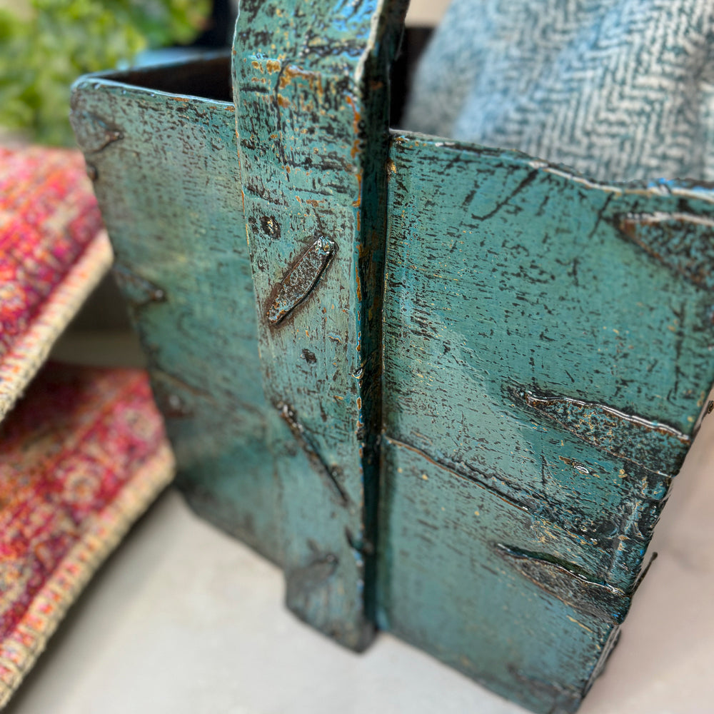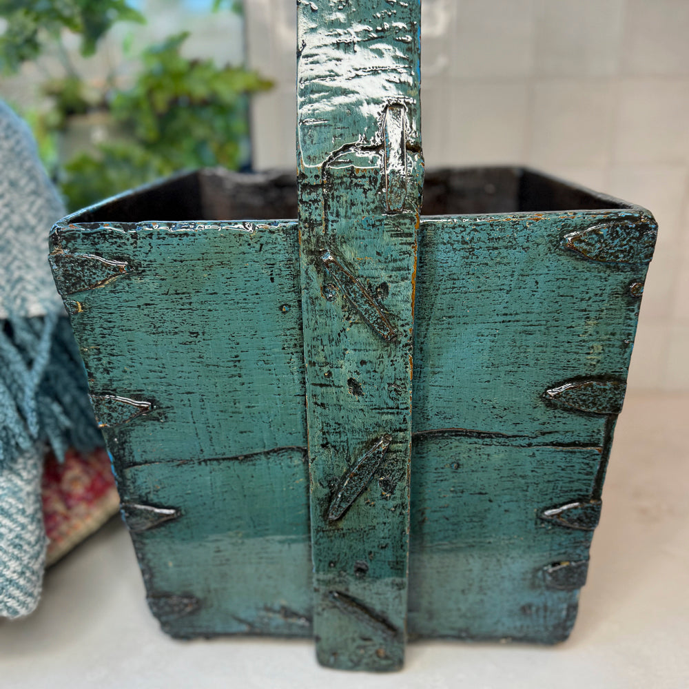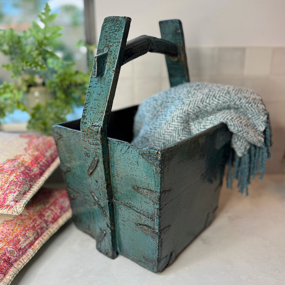 The MEI Chinese Vintage Rice Basket, sourced from Shandong Province, carries with it a story of tradition and renewal. Carefully restored with a verdigris blue lacquer, its weathered patina highlights the character of age while bringing a refreshed elegance.