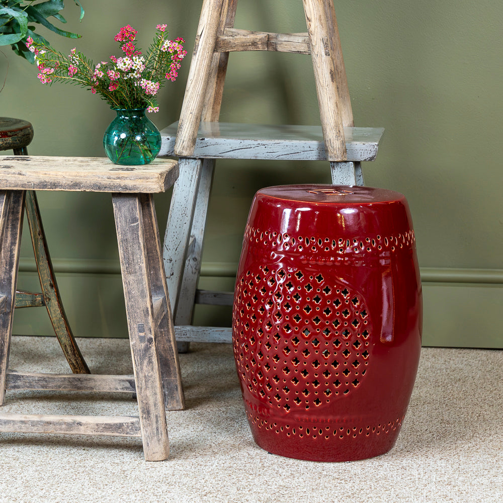 This decorative masterpiece serves as a statement piece, effortlessly elevating your interior design with its vibrant red hue and classic Asian-inspired pattern. Whether placed in your living room, bedroom, or entryway, this stool will become a focal point that sparks conversations and admiration.