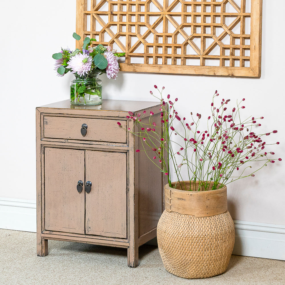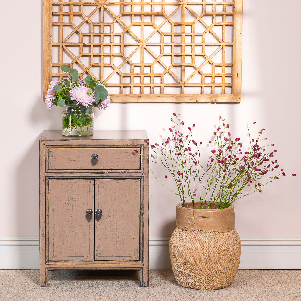 This exquisite Hampton dusky pink lacquer bedside cabinet, made from solid Chinese pine and crafted using traditional methods, is a perfect blend of durability and style. The soft, muted pink finish adds warmth and elegance, bringing a subtle yet sophisticated touch to any interior.