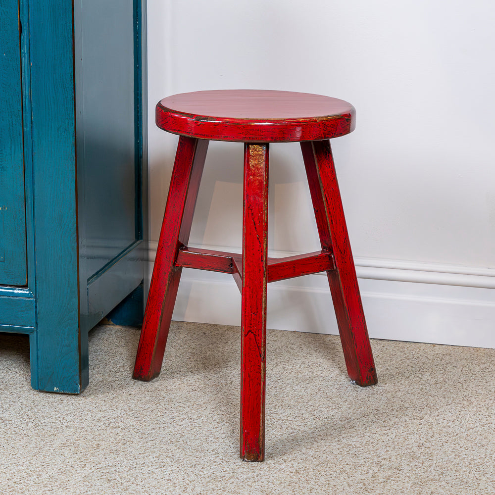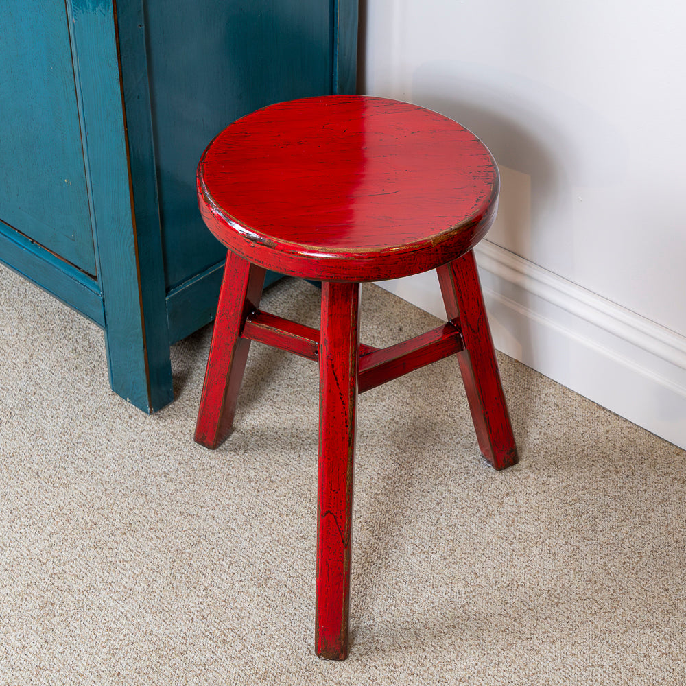 The HONGMAO stool is a striking piece inspired by traditional Chinese craftsmanship. Made from solid Chinese pine, it follows the same joinery and lacquer techniques used for generations, blending heritage with a fresh, modern finish. The vibrant red lacquer, applied in multiple layers, is lightly distressed to reveal character and texture.