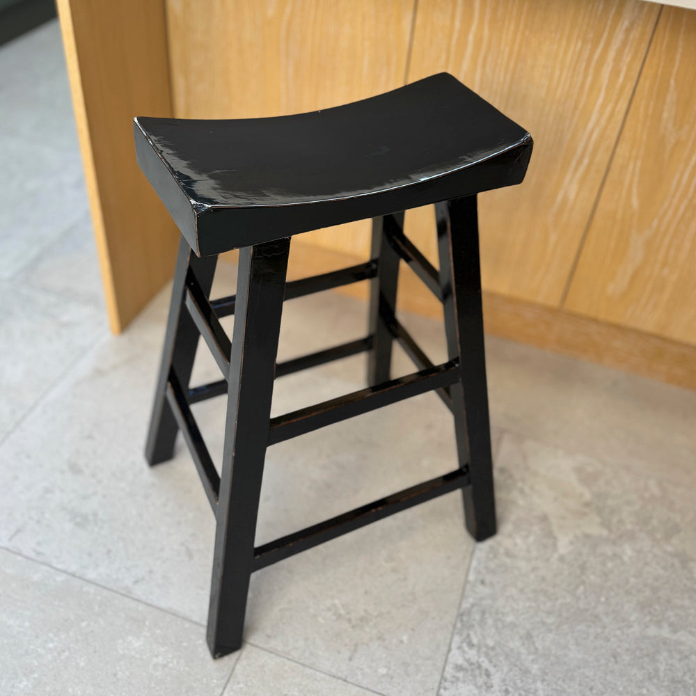 Elevate your interior with the timeless presence of this tall black Chinese wooden stool. A handcrafted piece inspired by traditional Oriental furniture. With its striking lacquer finish and tall, elegant form, this stool brings quiet drama and depth to any room, whether placed in the kitchen, bathroom, hallway, or living area.