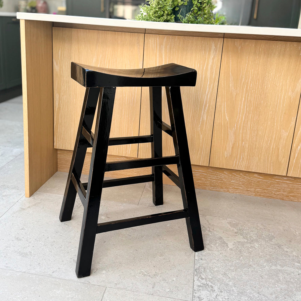 HAMPTON Black Tall Chinese Wooden Stool