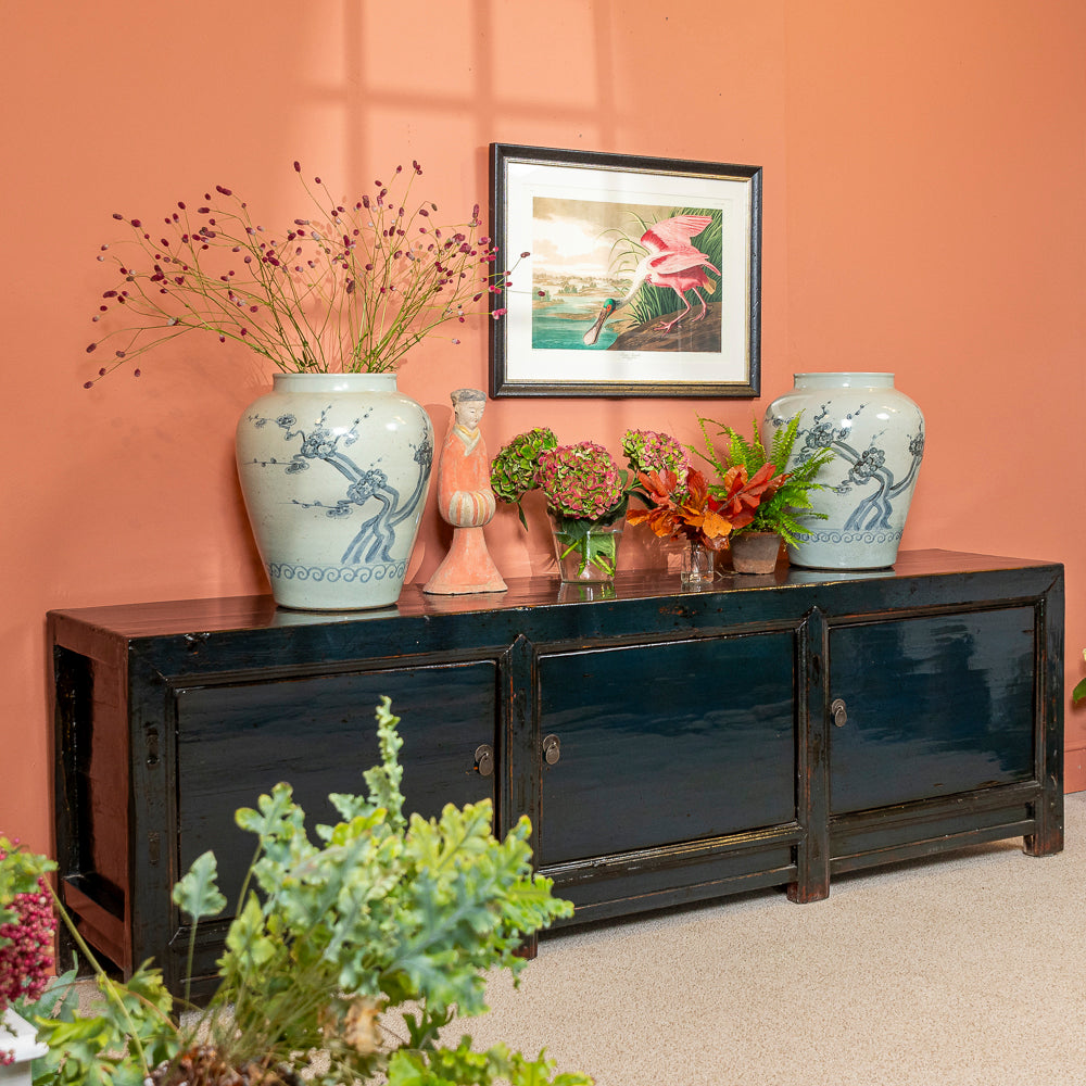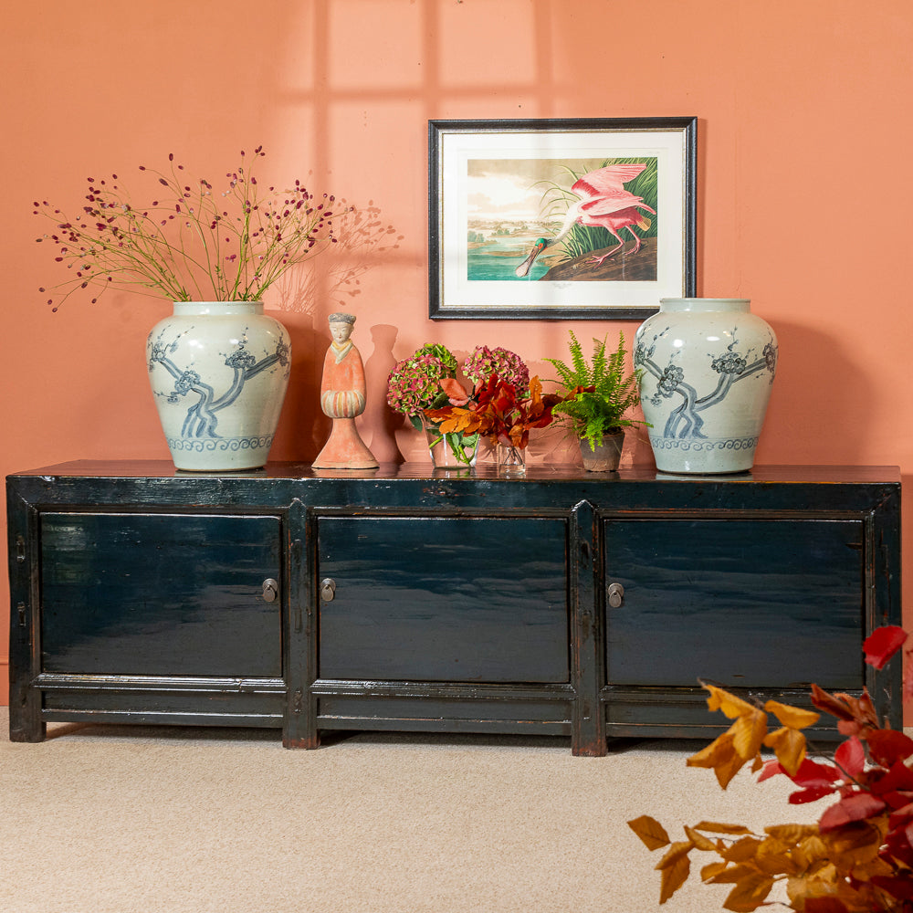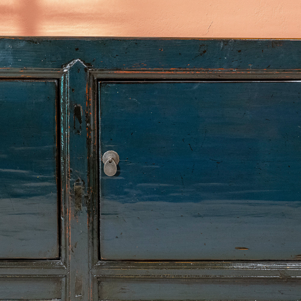 The indigo lacquer lends a sense of calm and sophistication, pairing beautifully with pale neutrals, warm earth tones, and metallic accents. Whether styled in a living or dining area, this piece brings timeless Chinese character to your home.