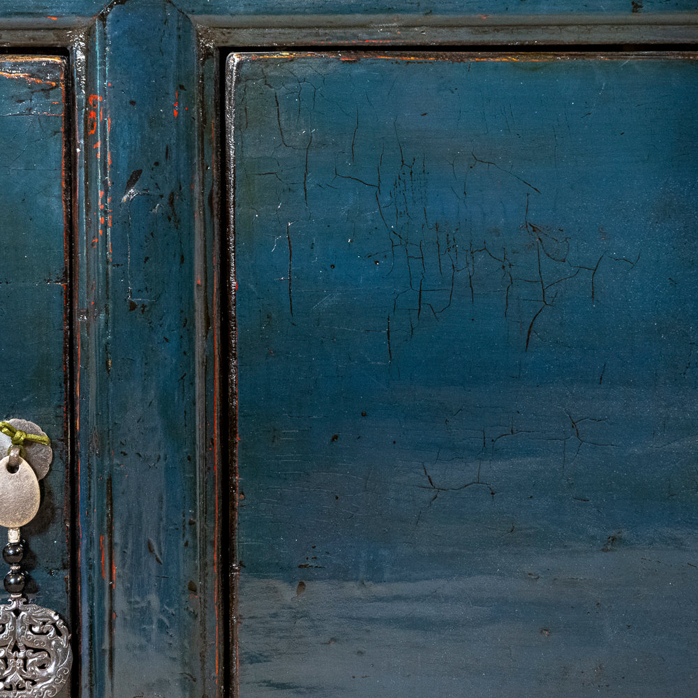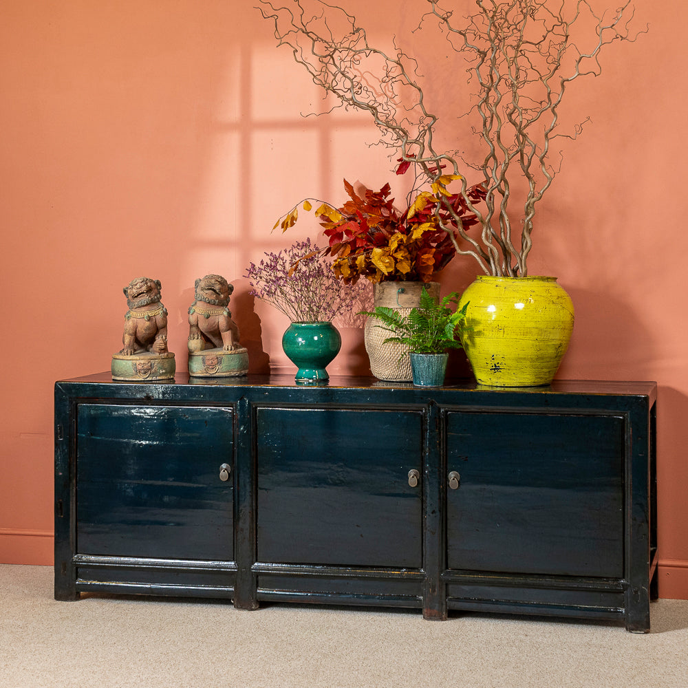 SHENLAN Chinese Blue Lacquer Sideboard c.1920
