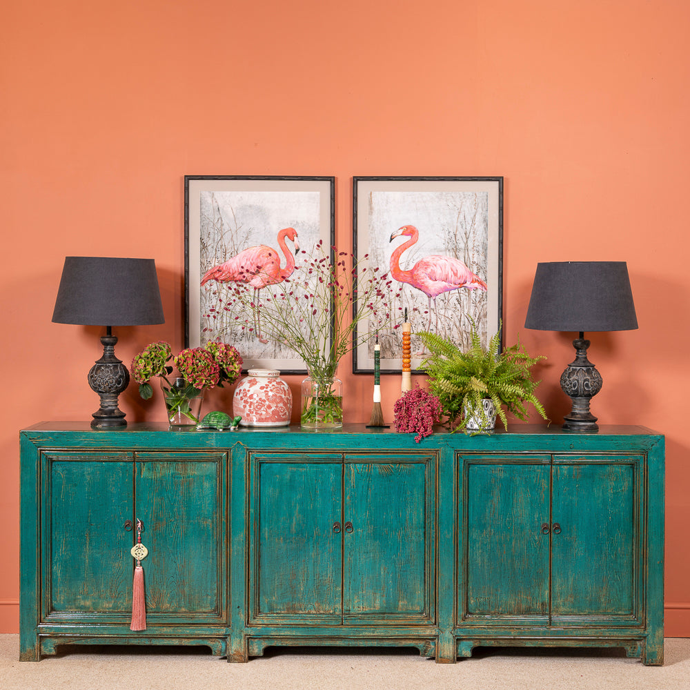 Our Chinese lacquer sideboards are certainly eye-catching, but above all else, it’s the colours that inspire awe. Perky turquoise, jade, teal and cobalt; serene mink and gunmetal grey; vivacious amber, scarlet and raspberry; enigmatic sepia and ebony. Bursting from these glorious hues are hand-painted flowers, birds, geometric patterns and pastoral scenes. Traditional hardware makes for an elegant finishing touch to our Chinese console designs. The result is a Chinese sideboard of rare beauty that will transform your space and increase your enjoyment of your home.
