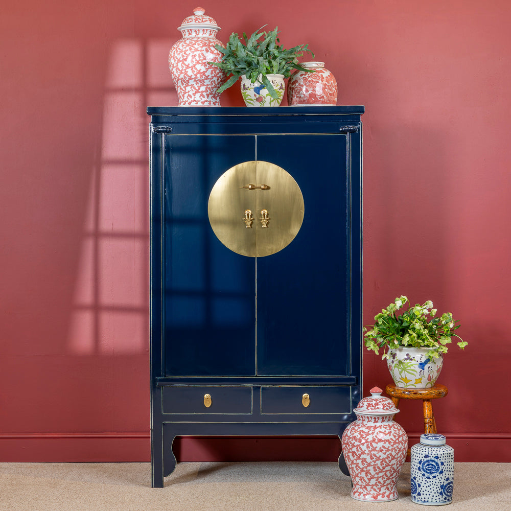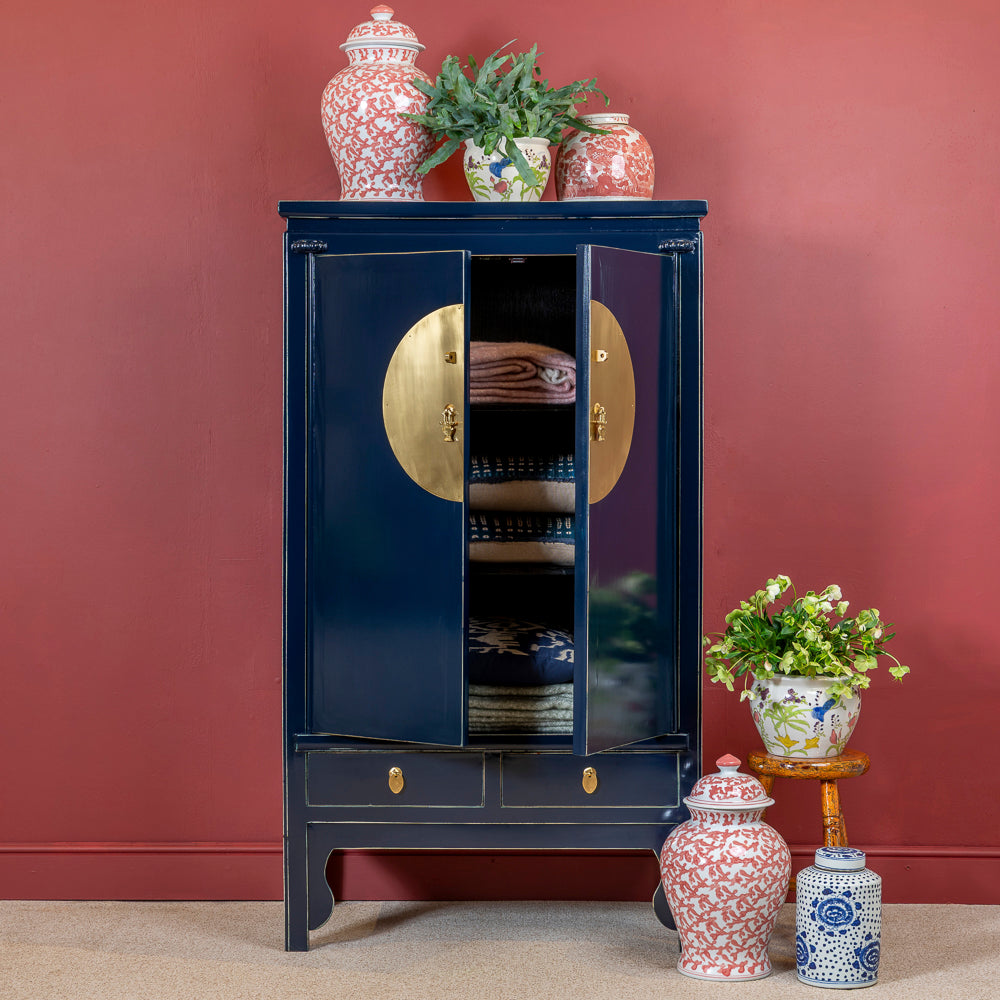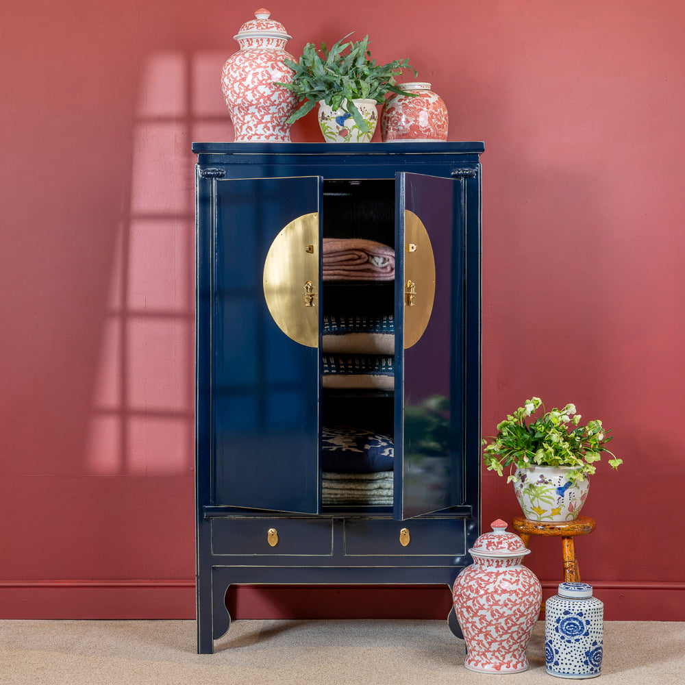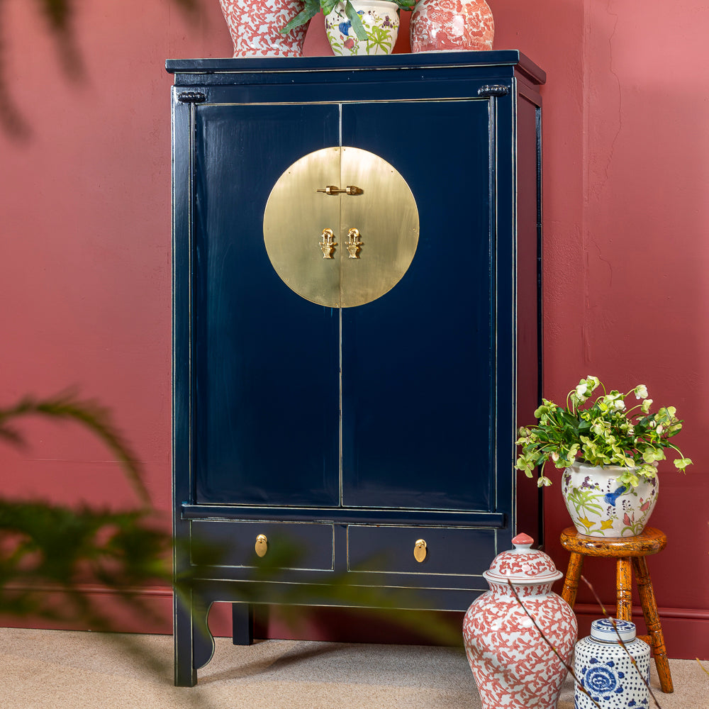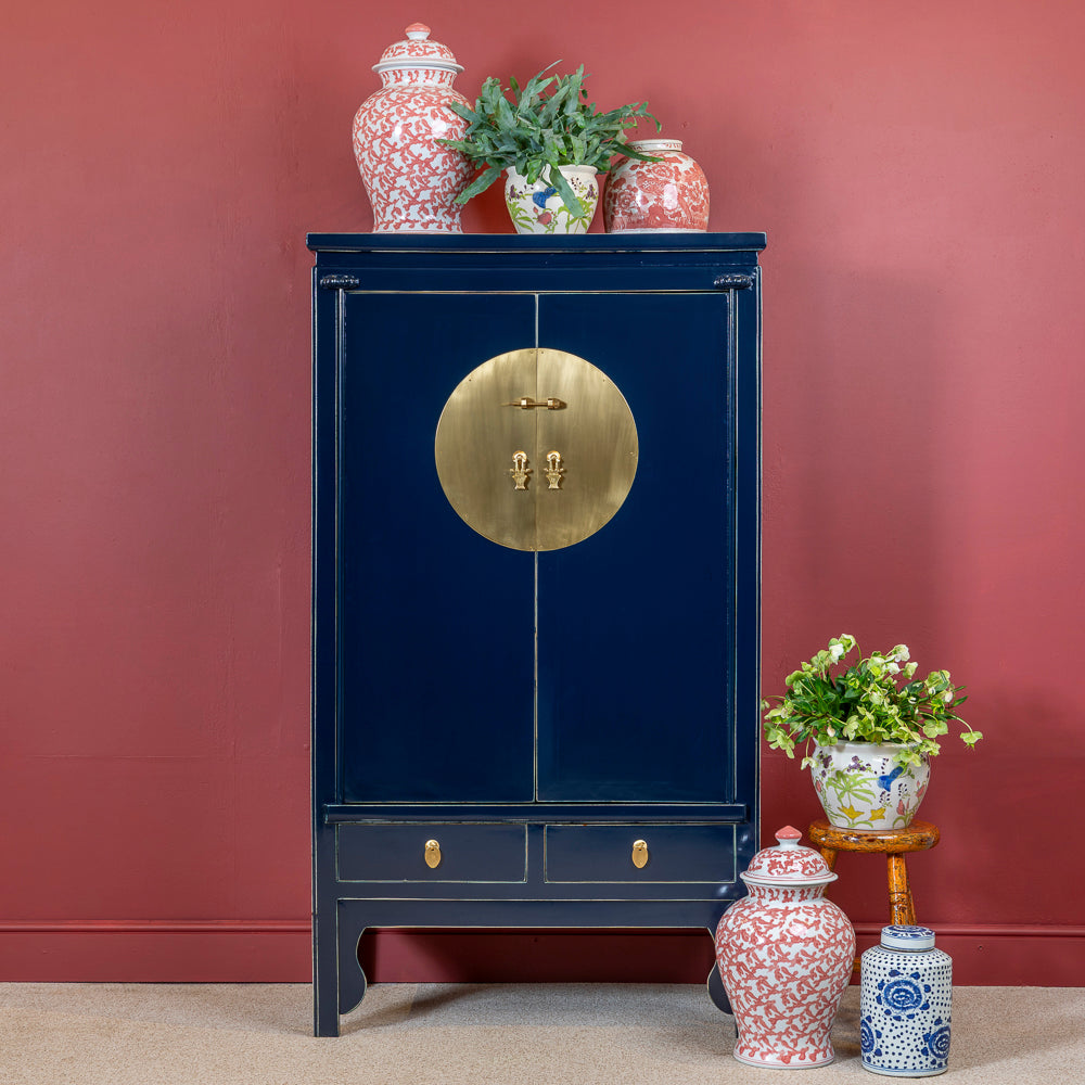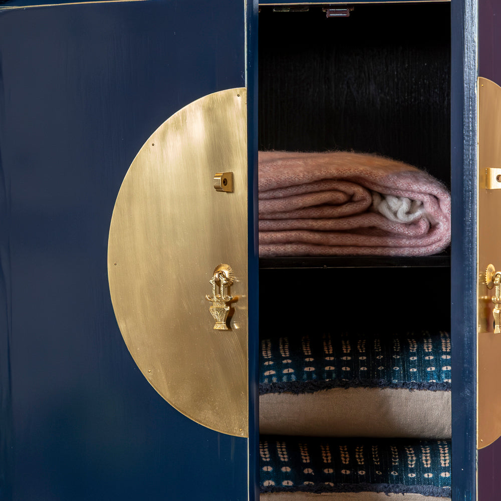 SHINO Indigo Wedding Cabinet with Gold Hardware