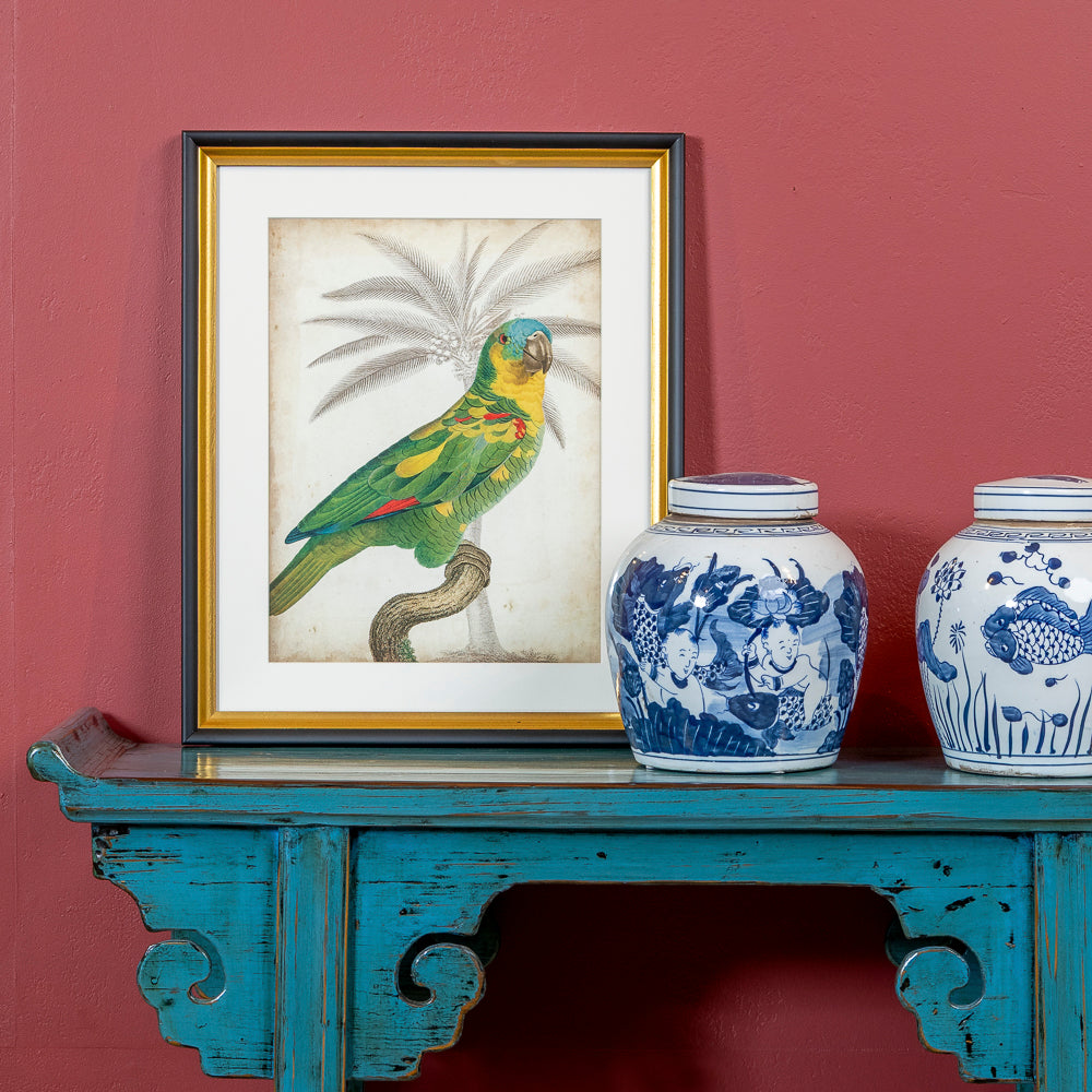 Bring a burst of tropical cheer into your home with the COCO Green Parrot Print, a playful yet elegant piece of wall art that instantly lifts the mood of any room. Featuring a vibrant green parrot with lively touches of yellow and red, perched against a softly faded palm backdrop, this vintage-style illustration combines charm with a touch of the exotic.