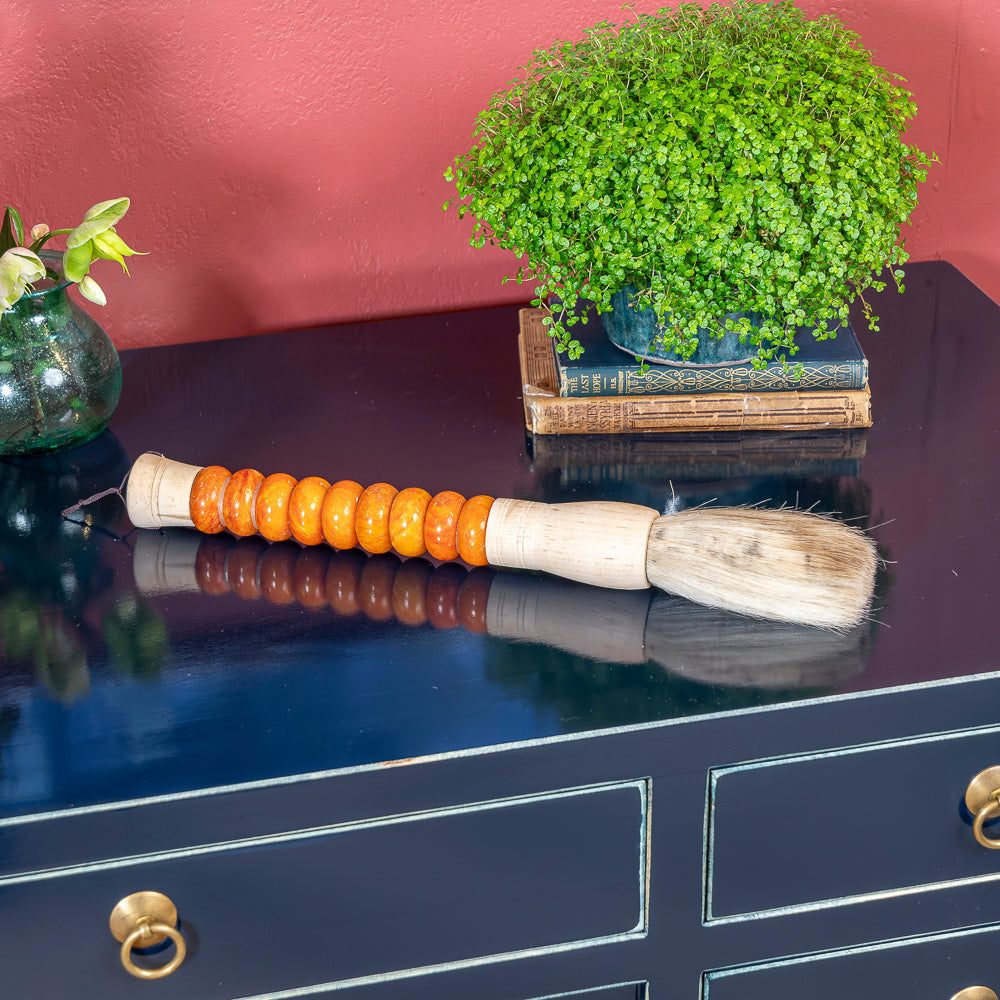 Ideal for adding an oriental touch to your home décor, this brush is not only a piece of art but also a symbol of Chinese cultural heritage. Display it individually or in a group for maximum effect. Its vibrant orange ceramic beads add a pop of colour that will stand out in any setting, making it a versatile addition to both contemporary and classic interiors.
